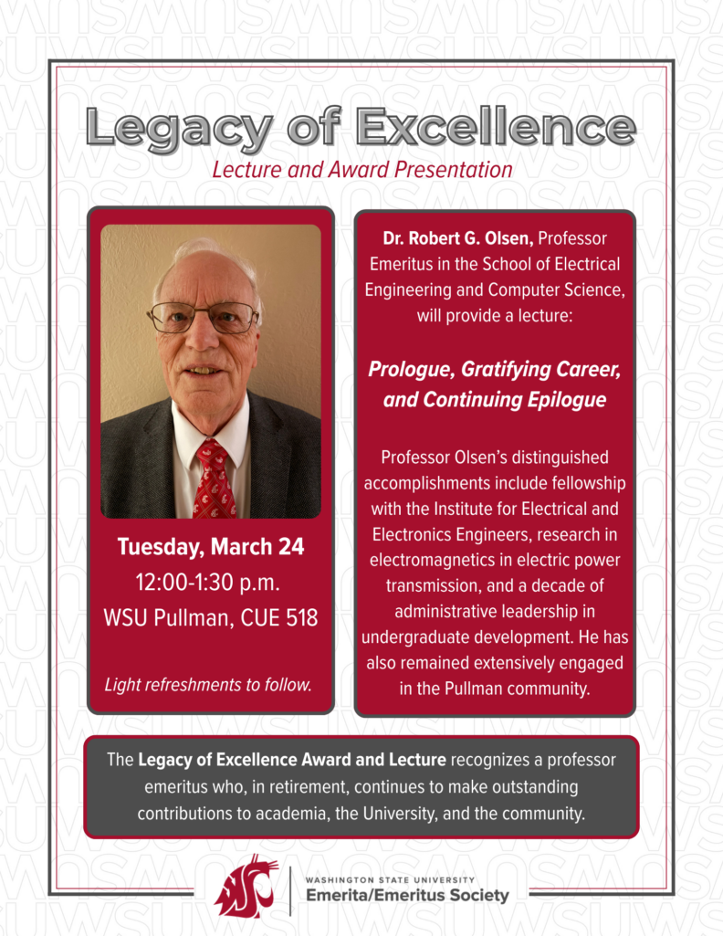 For many faculty, retirement is a time when they continue to be valuable and productive contributors to their occupations or professions and society at large. Therefore, the primary purpose of the Emerita/Emeritus Society is to enhance the relationship between the University and its emerita/emeritus faculty for the benefit of Washington State University’s land-grant mission and the greater welfare of its Emeriti and provide opportunities for retired faculty to continue their scholarship and service at the University.